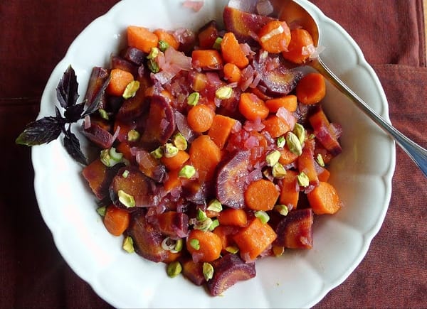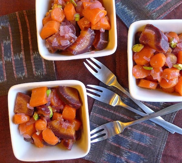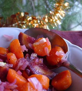| A recipe from a few hundred years ago - orange and purple carrots in a light, sweet and sour sauce - tastes fresh today. It's a fine side dish for holiday meals. |