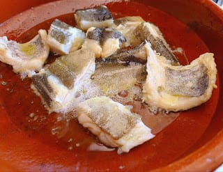 | Salt cod in garlicky pil pil sauce. |