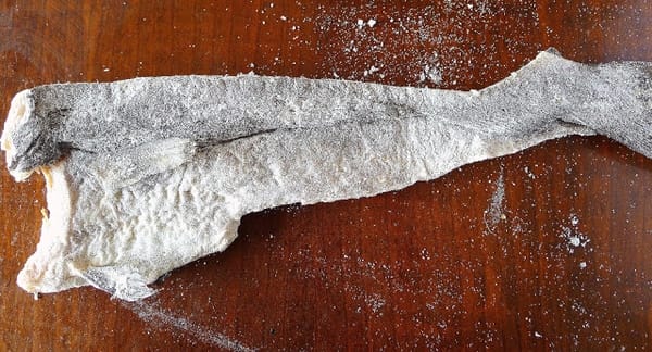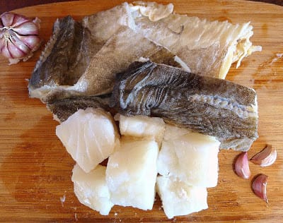 | Dry salt cod must be de-salted in water before cooking. |