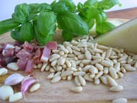 | Pine nuts, garlic, ham and basil for anti-pesto. |