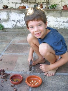 My grandson Leo is much more adept at cracking pine nuts than I. The problem, though, is that he eats them as he cracks them.