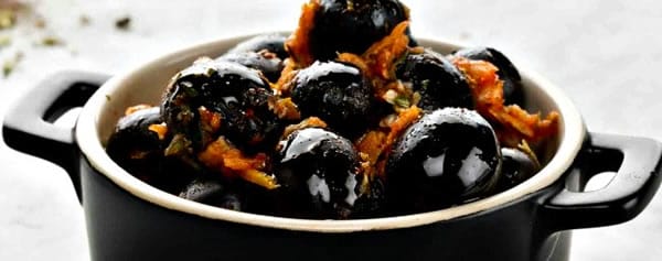 Marinated to piquant perfection, these olives are far from ordinary. To fully develop the flavor of garlic in the recipe, it is best to allow the olives to marinate for at least several days before serving.