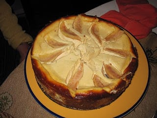 The sliced pears are lovely for winter desserts. But the cheesecake is equally good without them. A tart fruit sauce—of apricots or raspberries—also goes nicely with the cheese tart.