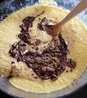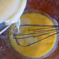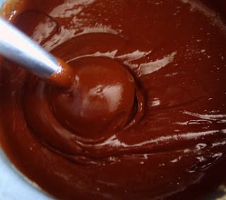 Pour the hot custard over the chopped chocolate and allow to stand a few minutes to soften the chocolate. Stir to mix the chocolate and custard completely.