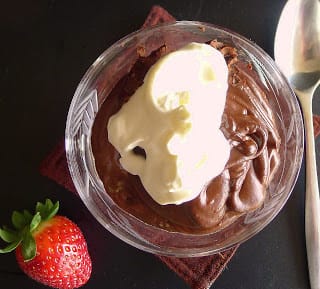 Unlike airy chocolate mousse, this custardy chocolate dessert is dense, intensely chocolatey. While not overly sweet, it is sublimely rich. A little goes a long way. I’ve noted a yield of six half-cup servings, but the custard could easily be divided into much smaller servings.