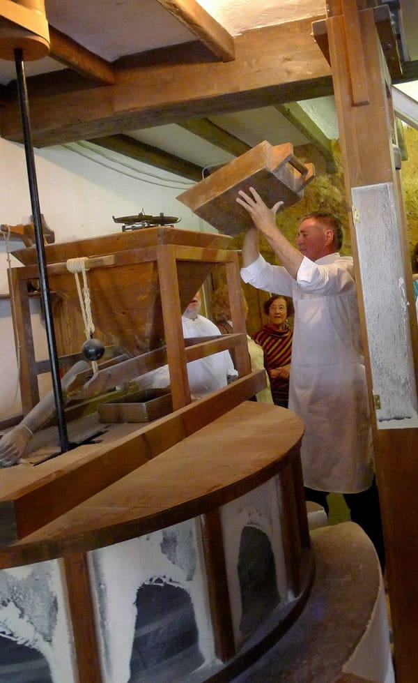 | Grist for the political mill. The current mayor of Mijas, Angel Nozal (Partido Popular), who is running for re-election next month, dumps wheat in the mill for grinding and gets his manos en la masa as well. |