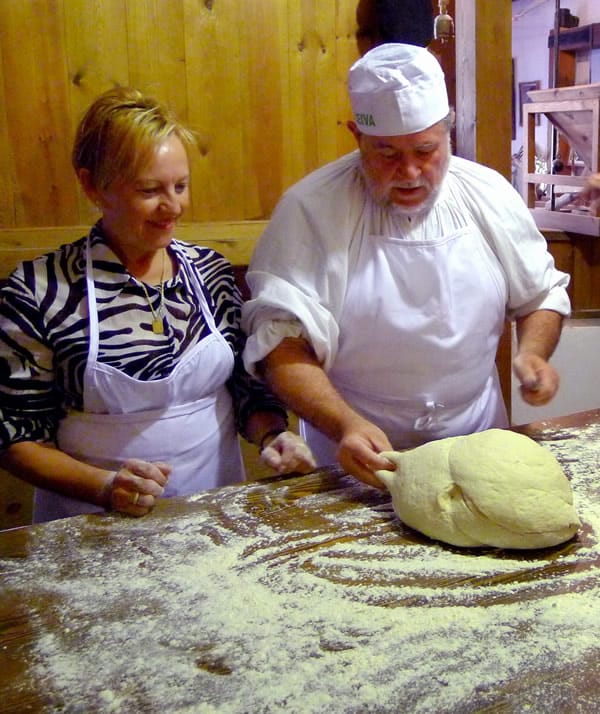 | Once the dough is kneaded until it is no longer sticky, Antonio Garcia shows the particpants how to pinch off pieces and shape them into small balls to enclose a raw egg. |