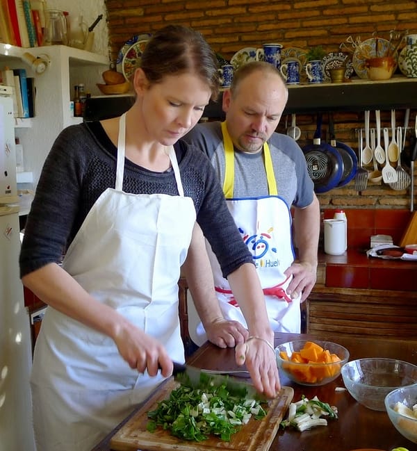 The kitchen sojourn is part of Chad and Hanna’s first-ever trip to Spain. Chad is a Canadian federal fishery officer (sort of like the salmon police) for Yukon and northwest British Columbia. Hanna is a big game outfitter who operates a hunting camp in northern British Columbia. A world away from the Mediterranean.