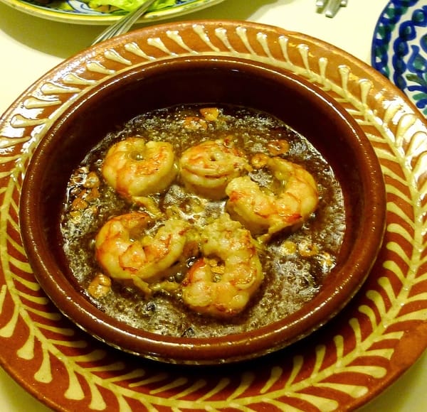 Sizzling shrimp (gambas al pil pil).