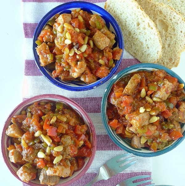 How to serve titaina? Room temperature or cold, like a salad, as a starter or light lunch dish. Serve it accompanied by bread for dipping and scooping. It’s also good heaped on a toasted bun or roll as a pepito sandwich. In Valencia, titaina is used as a topping for coca, a pizza-like flatbread, and as a filling for empanadillas. We liked it spooned over rice and tossed with penne. You can also cook the pepper-tomato mixture without the tuna and serve it as a sauce for tuna steaks grilled rare.