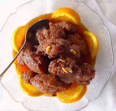 Add the fried dumplings to the syrup. Bring again to a boil, reduce heat to medium and simmer them 15 minutes. Let the dumplings cool in the syrup, then chill them before serving.