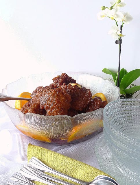 | Dumplings soak up the caramel syrup and become spongy-soft. |