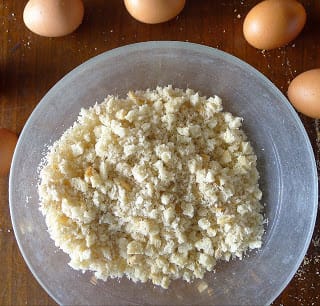 If using saffron, dissolve it in the 3 tablespoons hot water. Dribble over the bread crumbs with the salt and mix. Add eggs, one by one. Stir to combine very well. Chill the mixture at least 30 minutes.