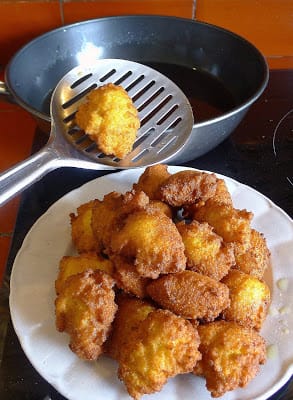 As I was rolling out matzo balls earlier this week, it occurred to me that, if they were cooked in caramel syrup instead of chicken soup, they might be rellenos dulces, a dessert typical for this time of year in La Mancha (central Spain).