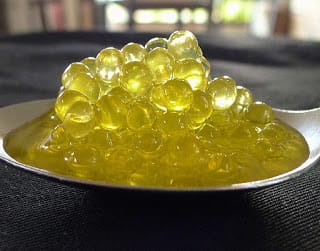 Olive oil pearls to garnish