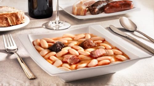 Fabada, the worlds' most famous bean pot comes from the wild mountains of Asturias. The beans are flavoured with all the local specialities like lacón, which is the cured front leg of a pig and oak-smoked fresh sausages.
