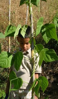 I fared somewhat better when I took Lucas with me to the huerta to pick strawberries, green beans, zucchini, cherry tomatoes, onions and lemons. He was happy to slice the zucchini, which I sauteed with cherry tomatoes. Hold the onions; keep the fresh basil on the side where it could be easily ignored. And he astounded me by eating wedges of lemon.