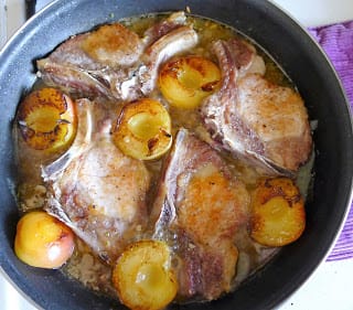 | Simmer chops with apricots and vinegar. |