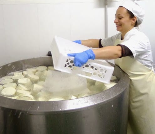 | Removed from the molds, fresh cheeses are ready for brining. |