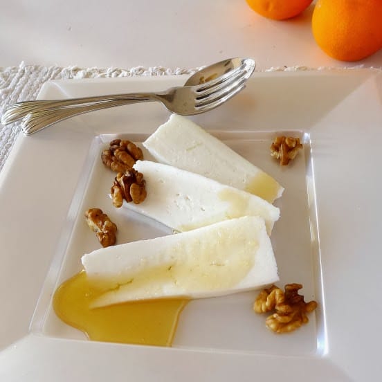 During the milking season, the goatherds made cheese with the excess milk, which I used to buy at a neighborhood shop. It was a small round of very white curds, marked by the woven esparto grass molds in which it was pressed. The cheese was soft and fresh, very mild in flavor, lightly salted. I never suffered any ill effects from eating raw-milk cheese, but I knew people who did. Nowadays it is prohibited by health regulations to sell fresh cheese made from unpasteurized milk.