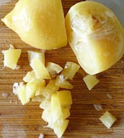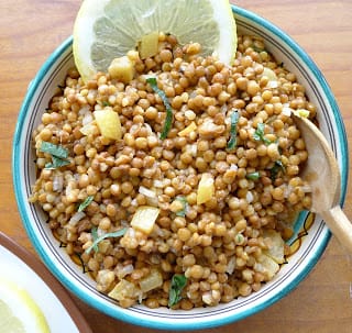 Combine the lentils and onion in a bowl. Add the diced lemon.