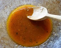 My plan here is, not to complicate this menu, but to customize it a bit. Instead of a glug of bottled vinaigrette, I’m making my own by adding spices to the basic dressing. A special ingredient—Moroccan lemons preserved in brine—adds real pizazz to plain canned lentils.
