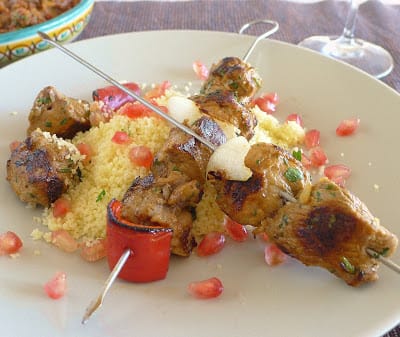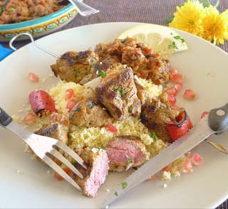 I served the kebabs on top of cous cous with zeilouk, a Moroccan “salad” as accompanying sauce or side dish.