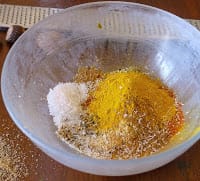 Combine all of the spices in a bowl. Store them, tightly covered, in a glass jar away from direct light.