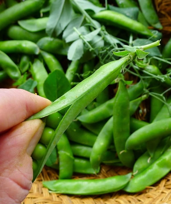 | Fresh-picked peas are so sweet. |
