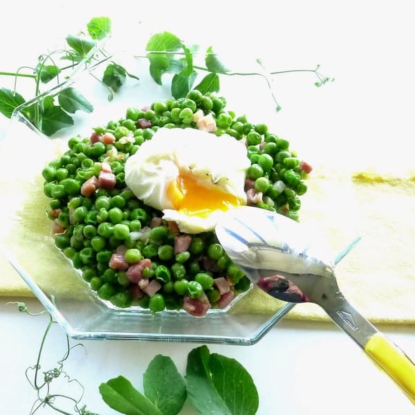 | With poached egg, peas are a main dish. |