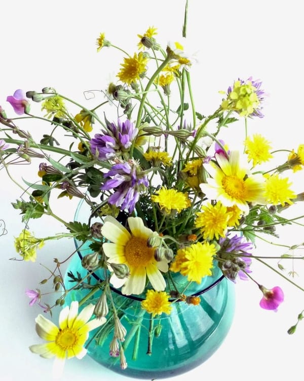 | Wildflowers, garden peas, April showers. Must be springtime. |