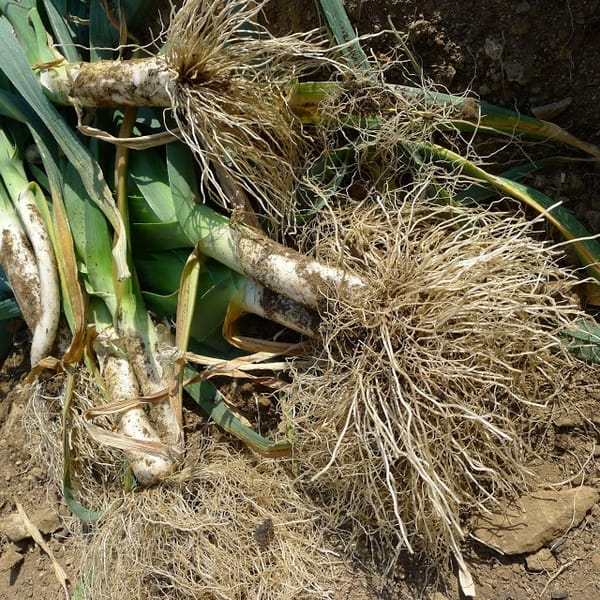 | Dirt collects between leaves. |