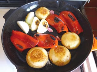 You can use the grilled garlic and a piece of grilled red pepper in this sauce. Use