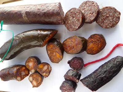 In Spanish cooking morcilla is usually added to cooked dishes such as potajes (see the recipe for bersa and the recipe for potaje de San Antón). It’s also delicious sliced and fried with eggs and potatoes or cooked on the grill with other meat.