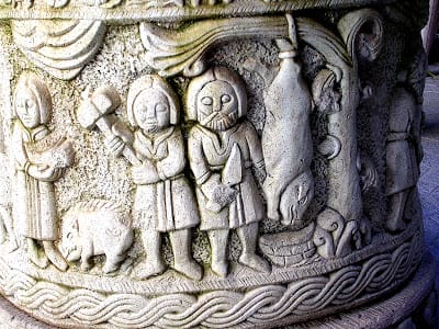 Bas-relief on a well in the courtyard of a house in a small La Mancha town, depicting the matanza, or slaughter, of a hog.