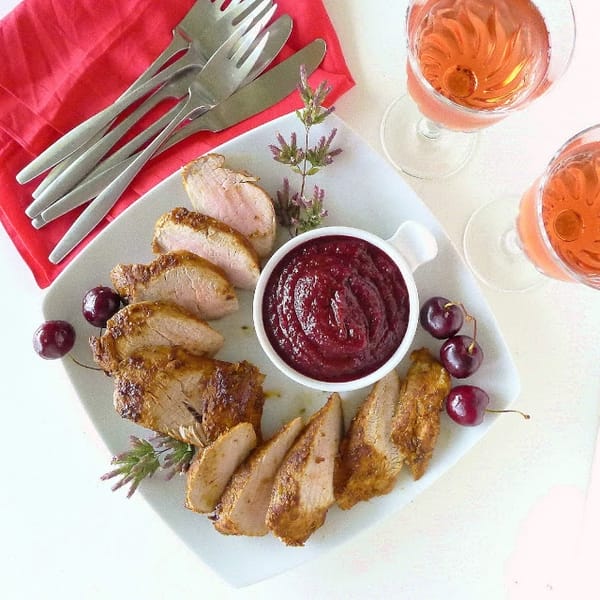 | Tangy cherry ketchup is a perfect accompaniment to quick-cooking pork tenderloin. Add a cherry-inflected Garnacha rosado wine from Navarra for a lovely summer menu. |