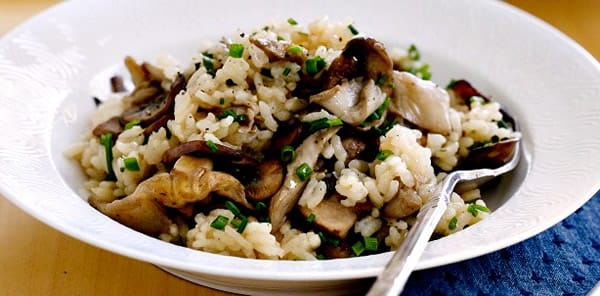Three varieties of mushrooms lend this exclusive mushroom paella recipe its distinctive taste and texture. Butter and Manchego cheese impart a creamy richness to the earthy rice, while the sherry, thyme, and basil add flavour and interest to the dish.