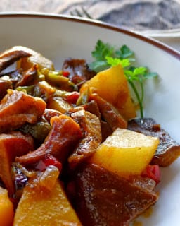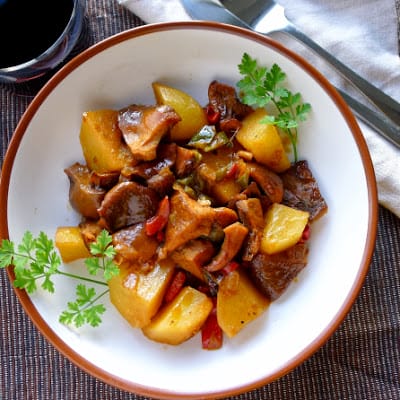 | Wild mushroom and potato stew, a delicious fall dish. |