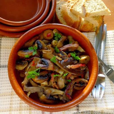 | Mushrooms sauteed with garlic, a favorite tapa dish. |