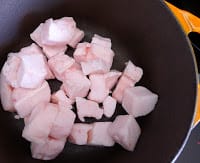 | Melt pork fat to make lard. |