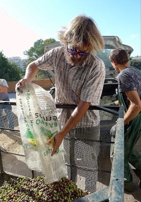| First, pick the olives. Get them to the mill as soon after picking as possible. That way, they maintain their freshness and fruitiness and produce the finest virgin oil. |