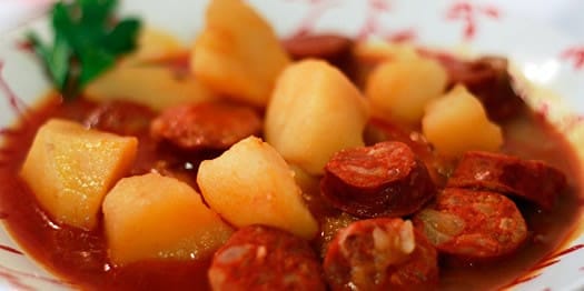 When the acclaimed French chef Paul Bocuse was asked to prepare a banquet for the hundredth anniversary of a famous winery in La Rioja, he shared this dish with the kitchen staff and apparently requested a second and then third serving for himself! Even when made with chorizos produced in the United States, it is delicious.