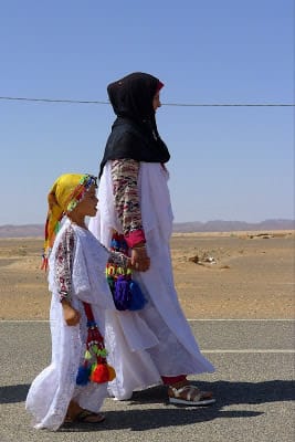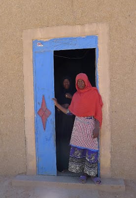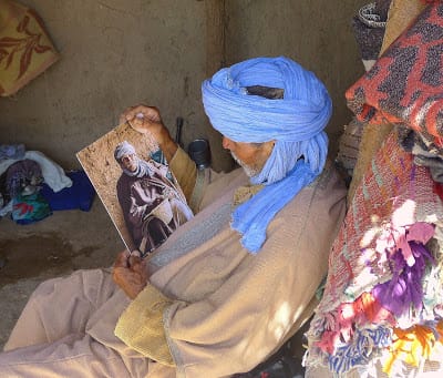 | Antonio, a superb portraitist, delivers a photo he made last year to this elderly desert man. A gregarious, exuberant and always curious human being, Antonio makes friends with people everywhere he goes. He took us along to visit people of the desert whom he had met and photographed on previous trips. |