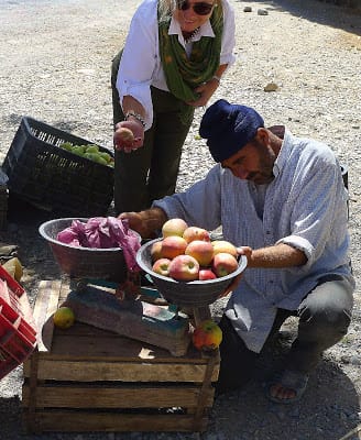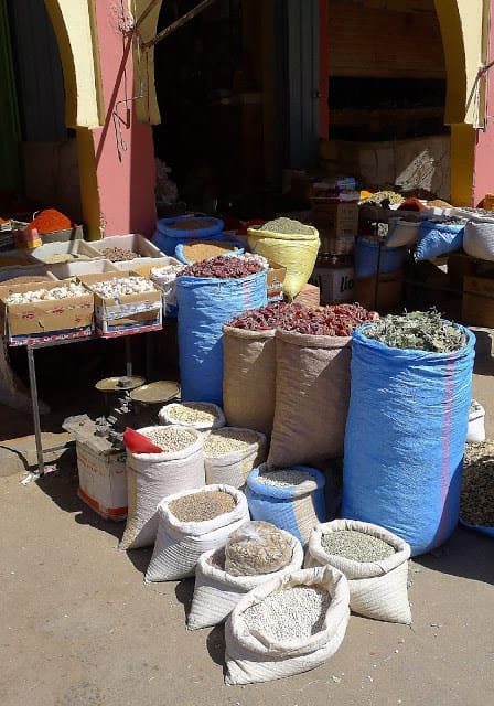 Where I put my eye seemed to be mainly on food! In kitchens, in markets, food on the hoof and fruits on the tree. I recorded every meal we ate on the eight-day trip, from Tangier to Azrou to Merzouga and return via Midelt, Moulay Idriss and back to the port of Tangier.