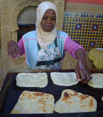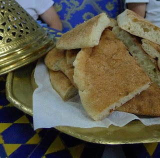 | Moroccan bread, baked in a round loaf, accompanies every meal. |
