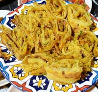 | Flat bread rolled with spicy onion, sliced and fried. |