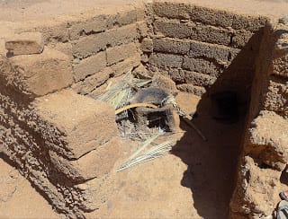| The ceiling in the elderly man's desert home. Note the light switch and bulb, powered by solar panel outside. |