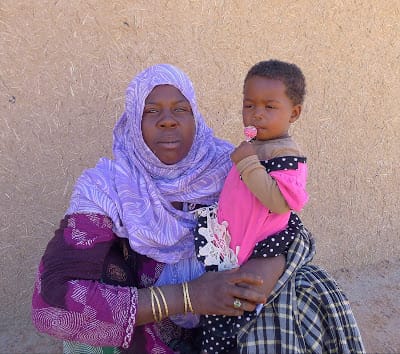 | Seated outside her home, this woman cleans and sorts dried herbs. |