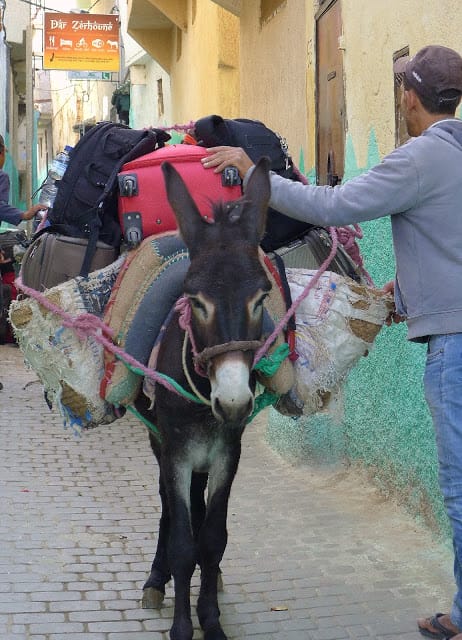 | Leaving Moulay Idriss, we needed three donkeys to transport luggage from the guest house to the cars. |