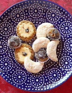 | A selection of Moroccan pastries. These were served on the breakfast buffet. (Hotel Les Dunes d'Or, Merzouga.) |